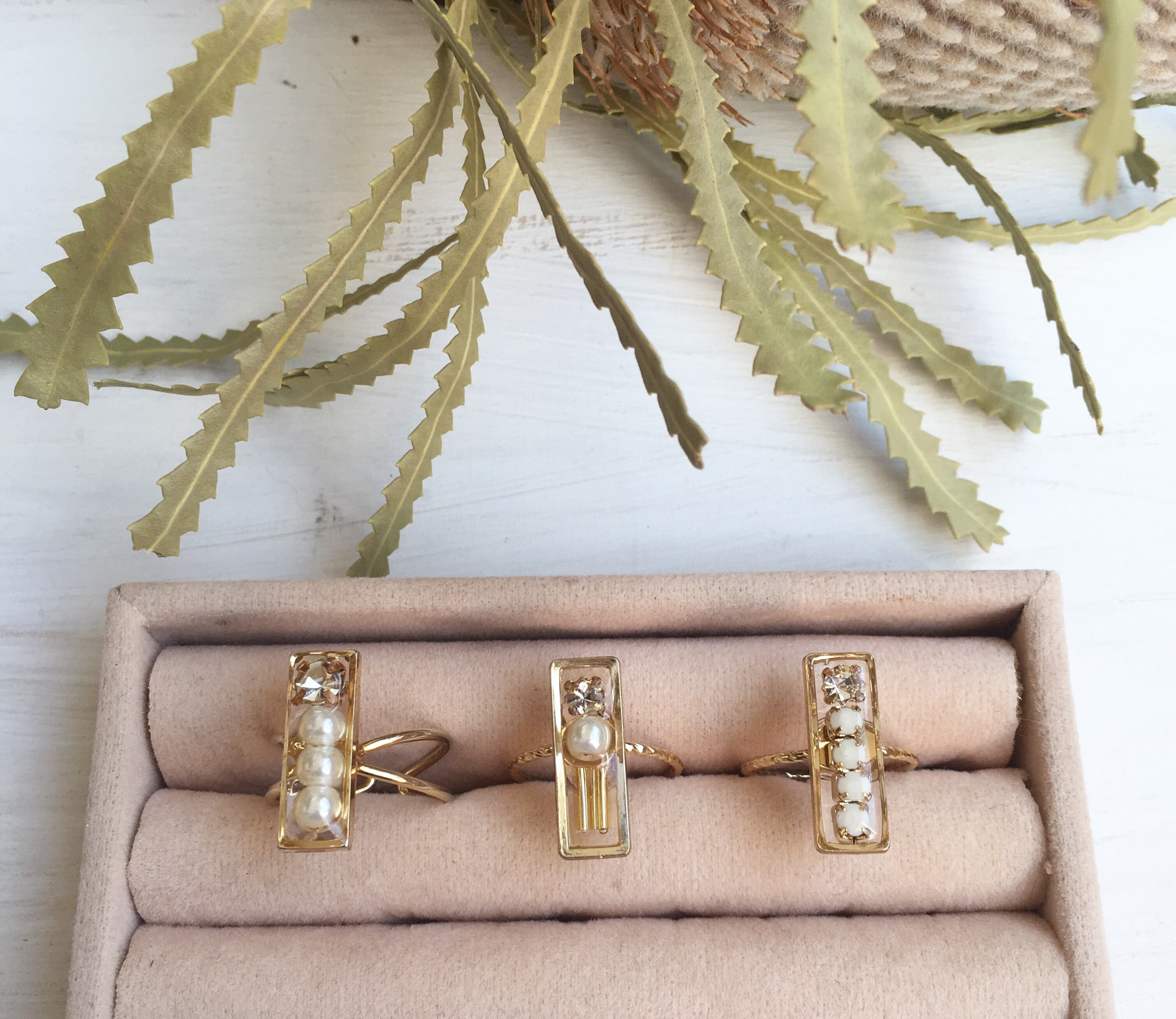 パールをメインにガラスストーンと一緒にレジンで固めました。