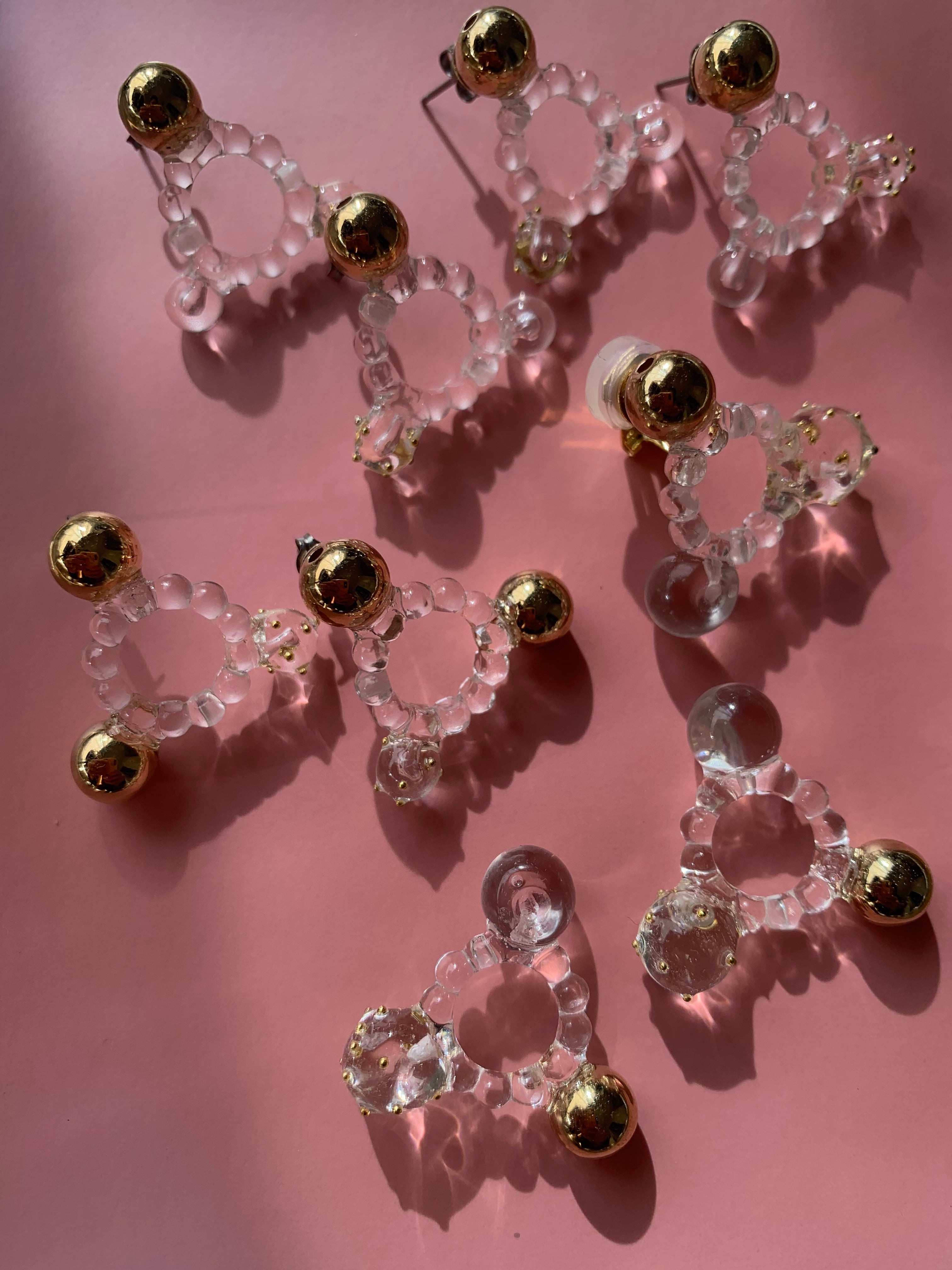 ゴールド玉とクリア玉を合わせたトライアングルデザイン。