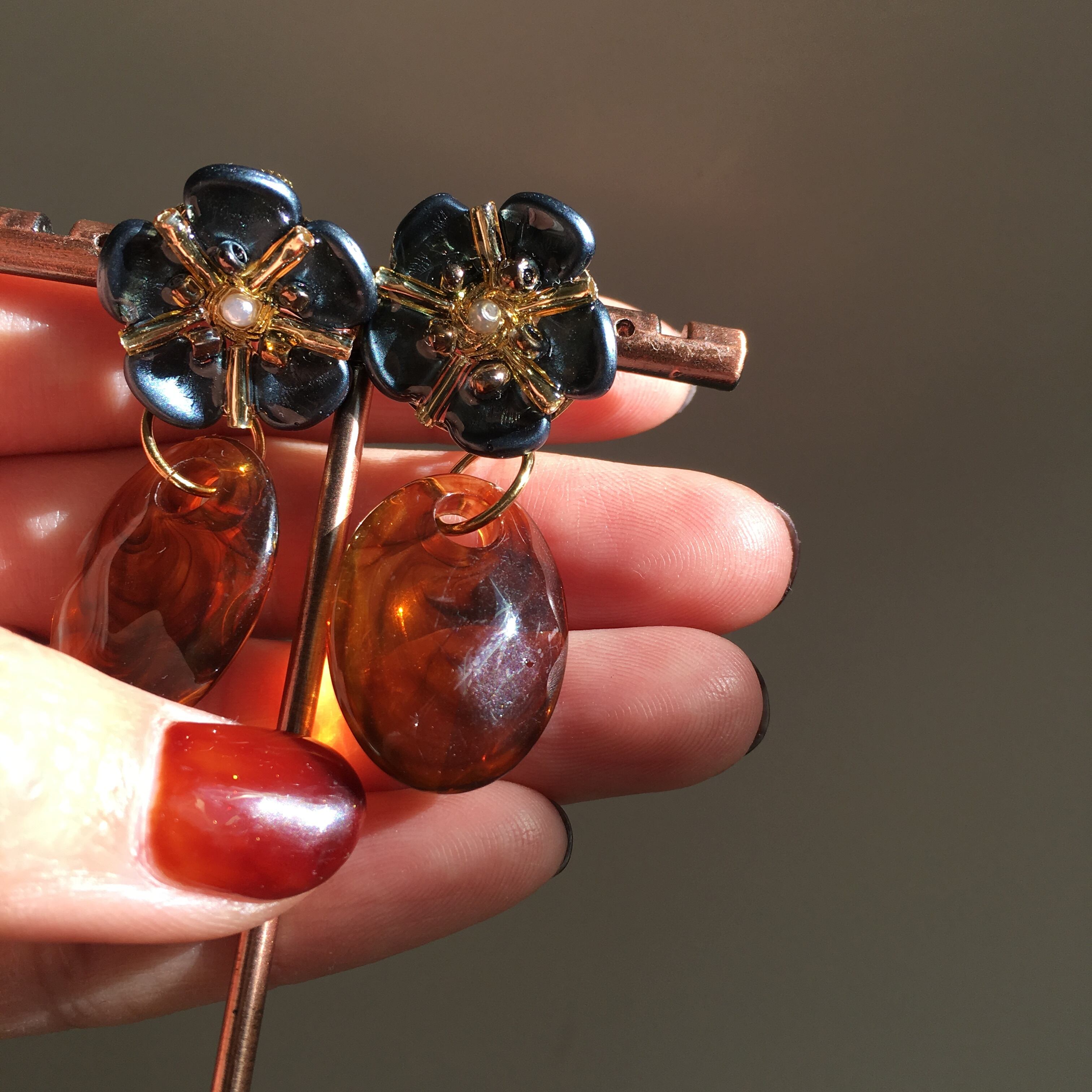 べっ甲飴のようなぷっくりパーツをつけて、アンティークさをだしました。