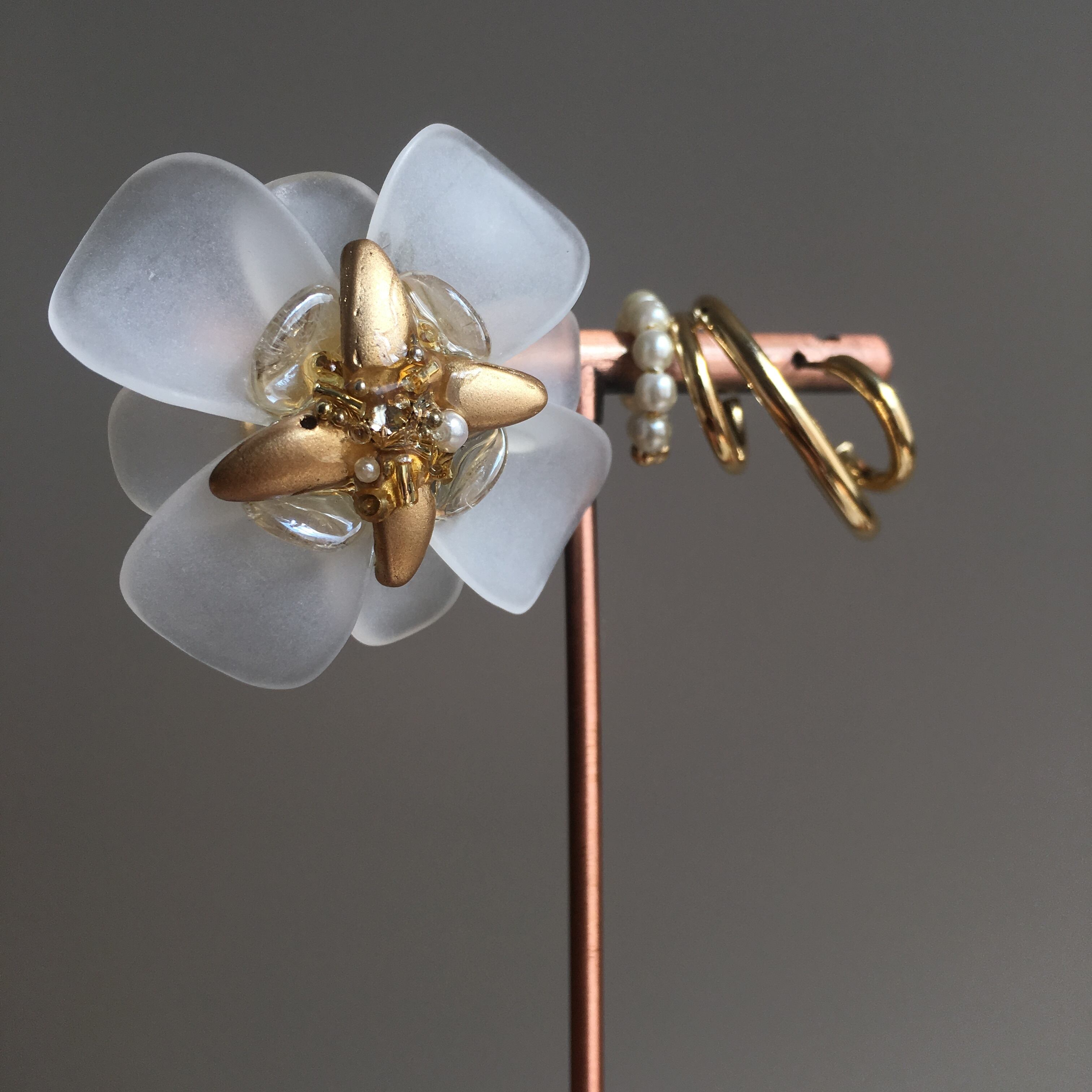 チェコビーズで存在感あるお花を耳元に。