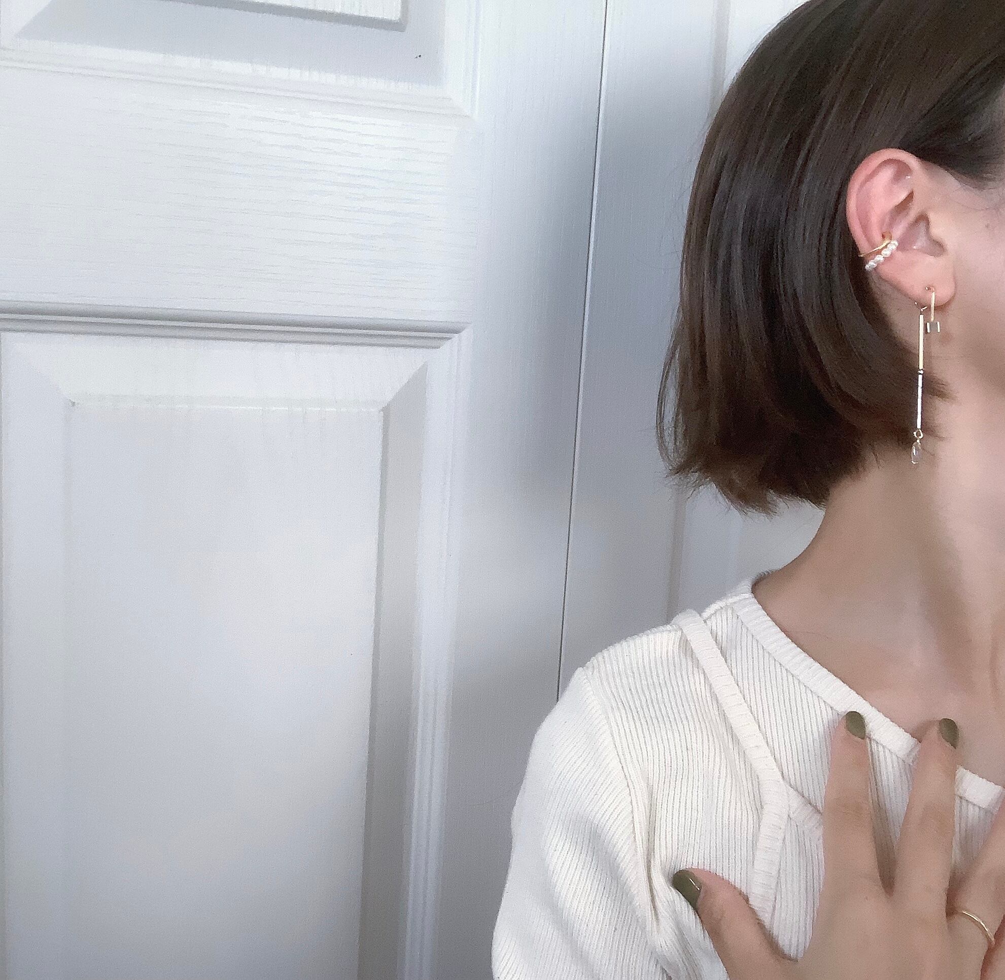 耳たぶを軽く引っ張り、上の耳のふちの薄いところからイヤーカフを通して付けたい位置に持っていくのが、スムーズにつけるコツです。落ちないか心配な方は、イヤーカフを少し締めて安定させてみてください。