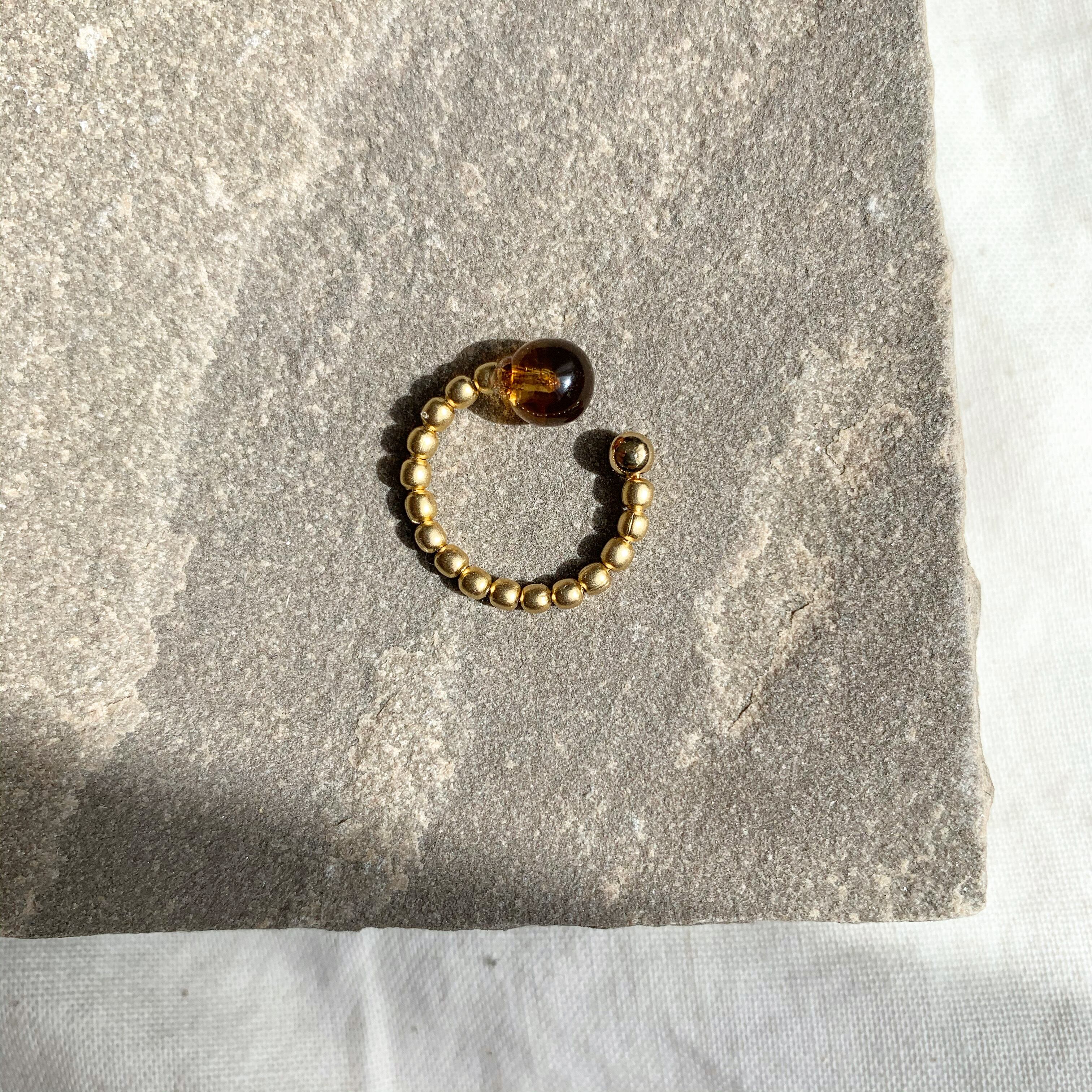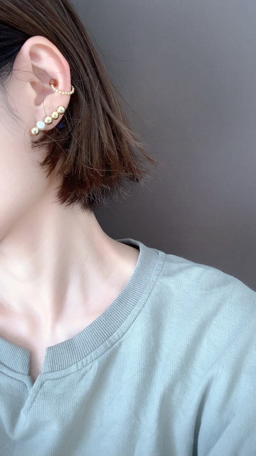一緒につけている1枚目イヤカフ風ピアス、2枚目真鍮ボール玉ピアスも販売中です。