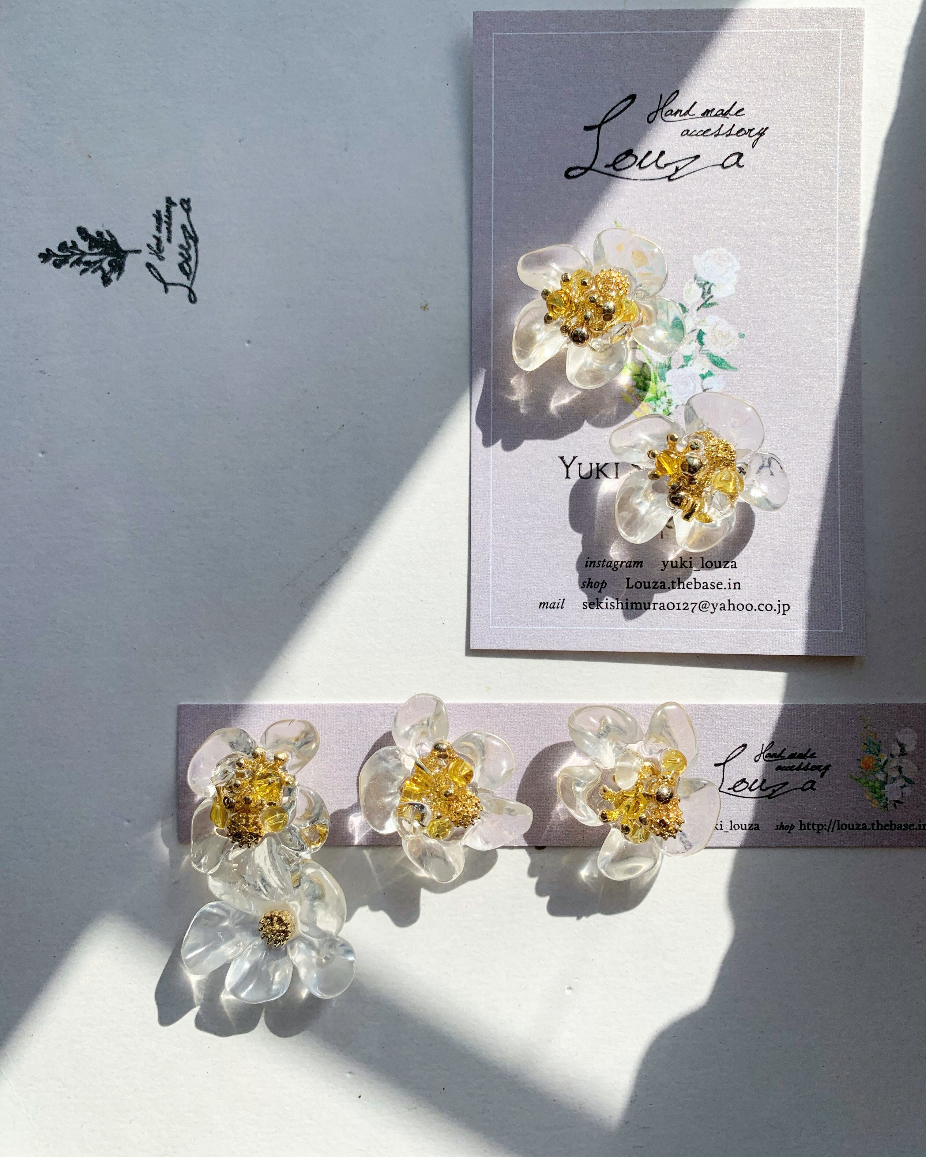 クリアのお花に黄色は天然石シトリンを使用。