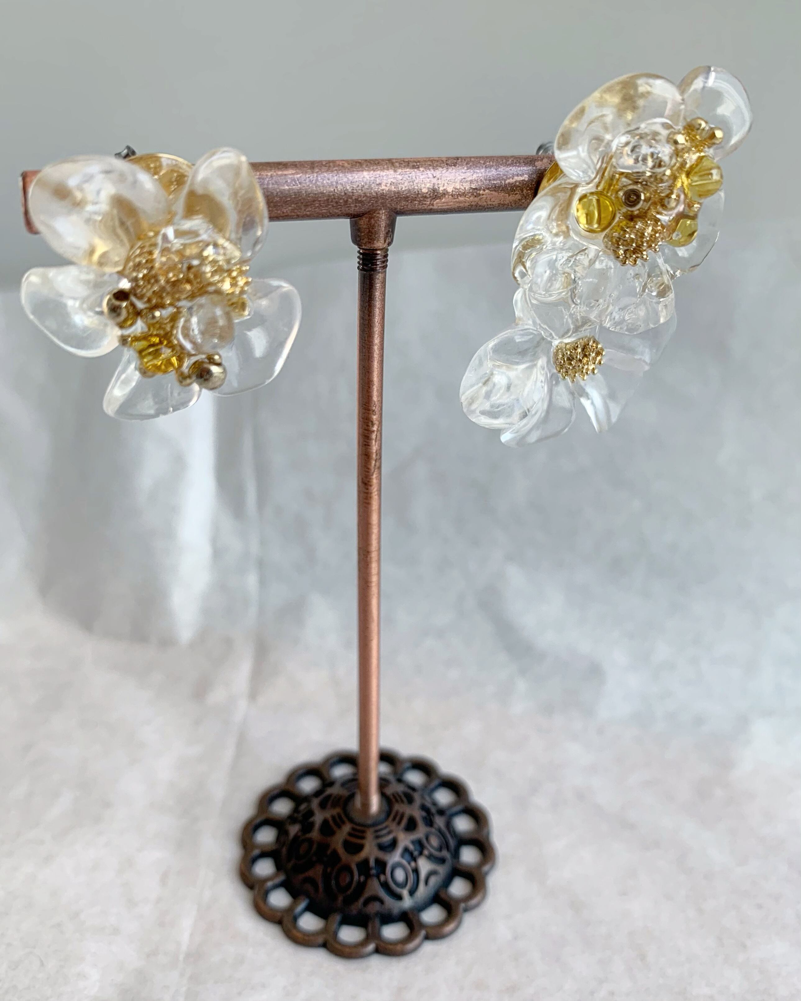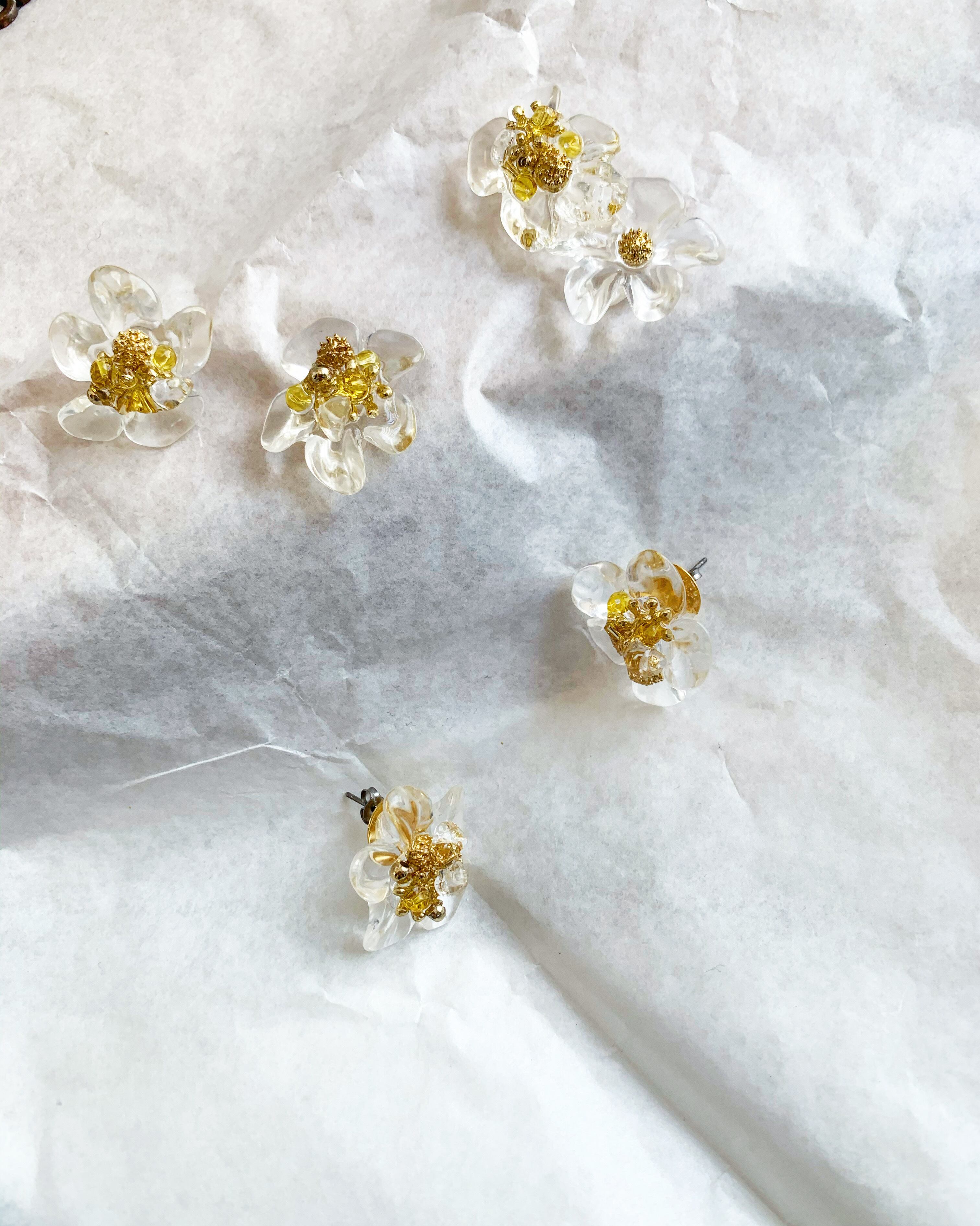 クリアのお花に黄色は天然石シトリンを使用。