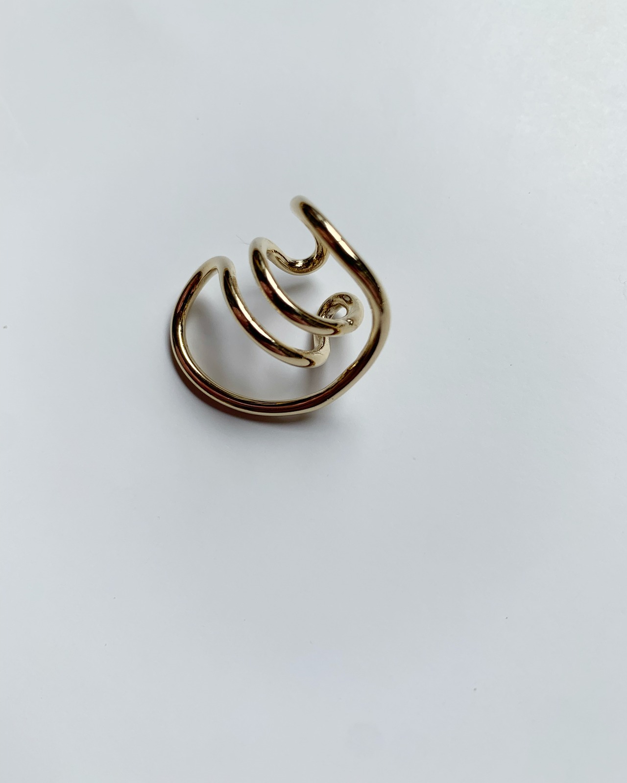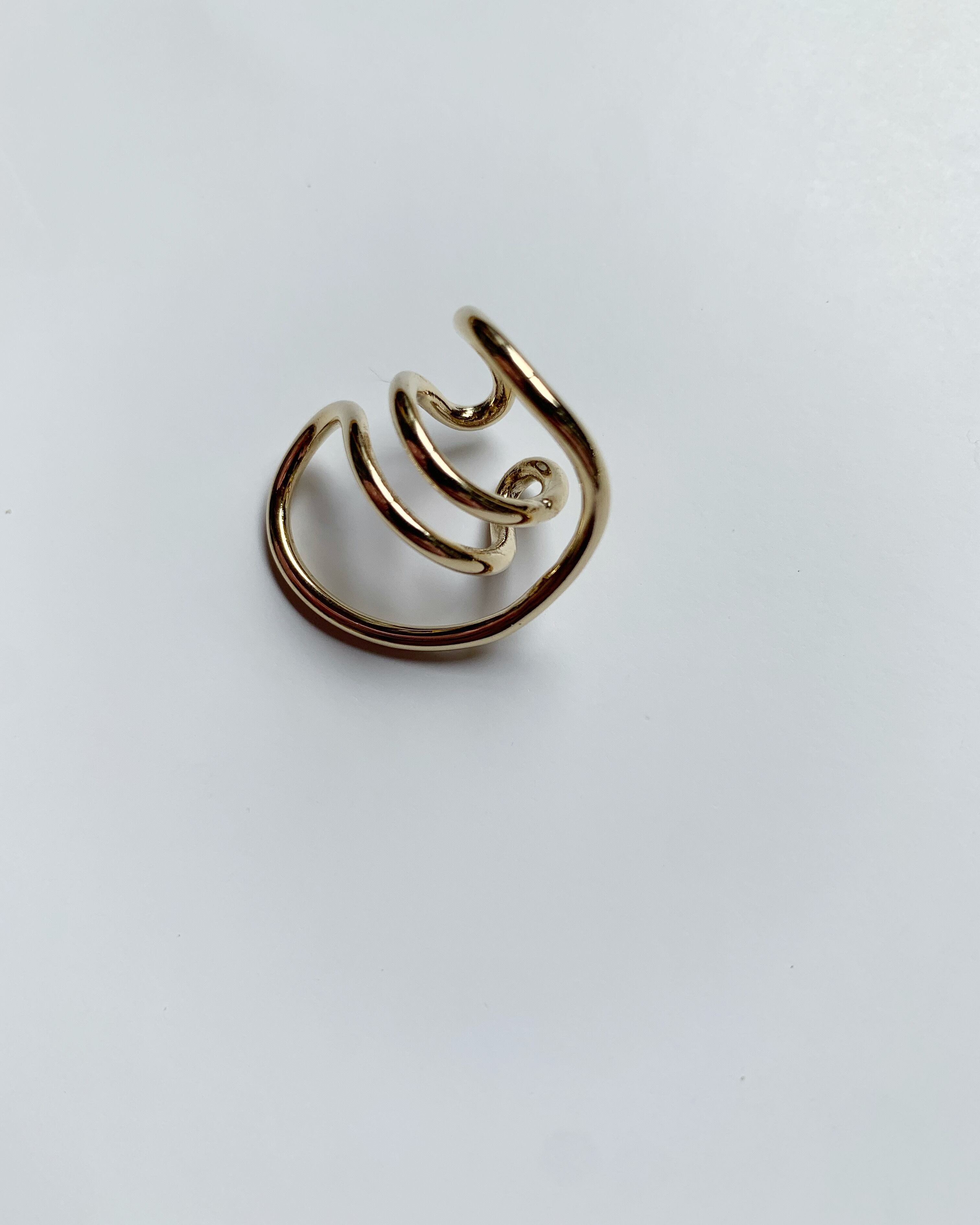 耳たぶを軽く引っ張り、上の耳のふちの薄いところからイヤーカフを通して付けたい位置に持っていくのが、スムーズにつけるコツです。落ちないか心配な方は、イヤーカフを少し締めて安定させてみてください。