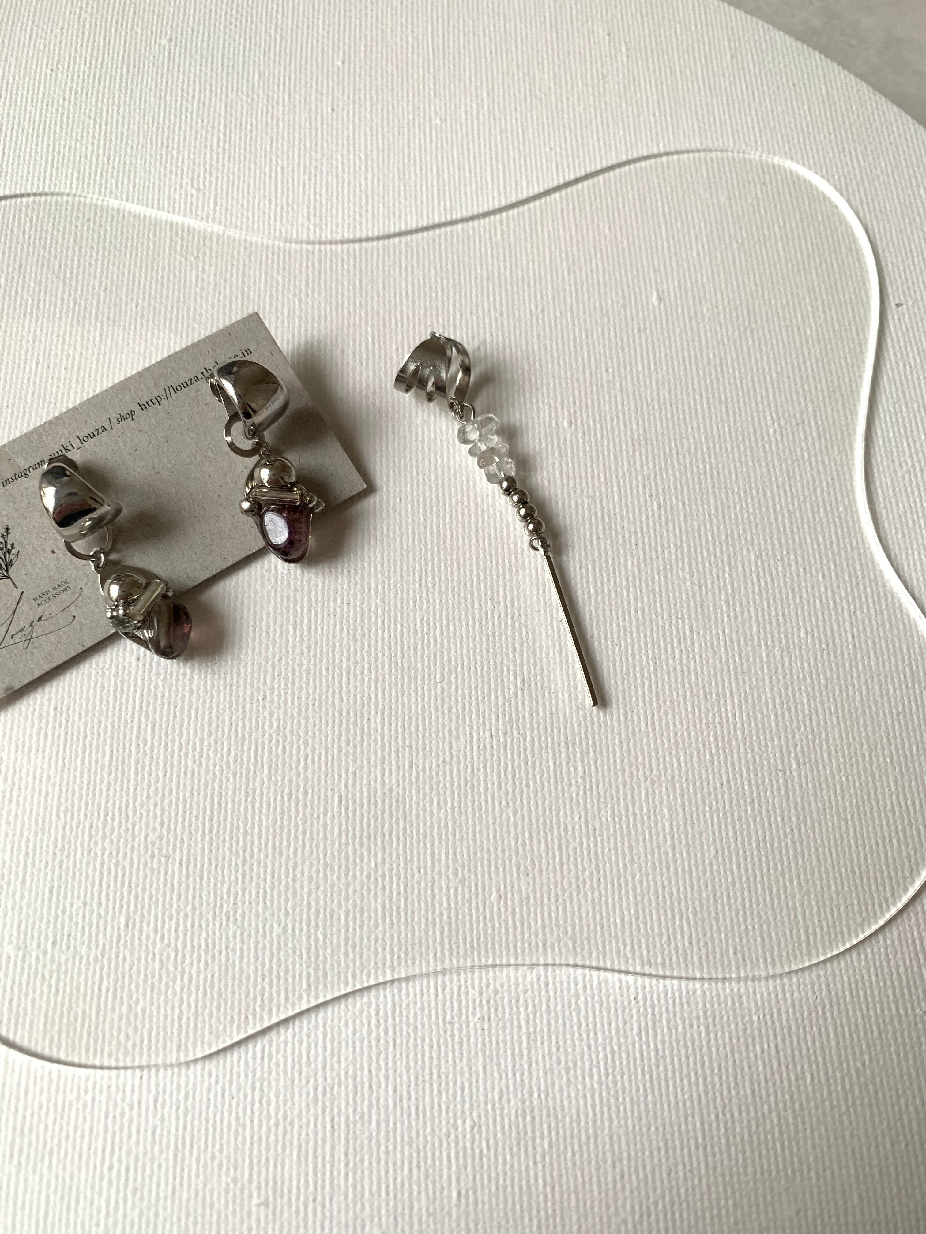 耳たぶを軽く引っ張り、上の耳のふちの薄いところからイヤーカフを通して付けたい位置に持っていくのが、スムーズにつけるコツです。落ちないか心配な方は、イヤーカフを少し締めて安定させてみてください。