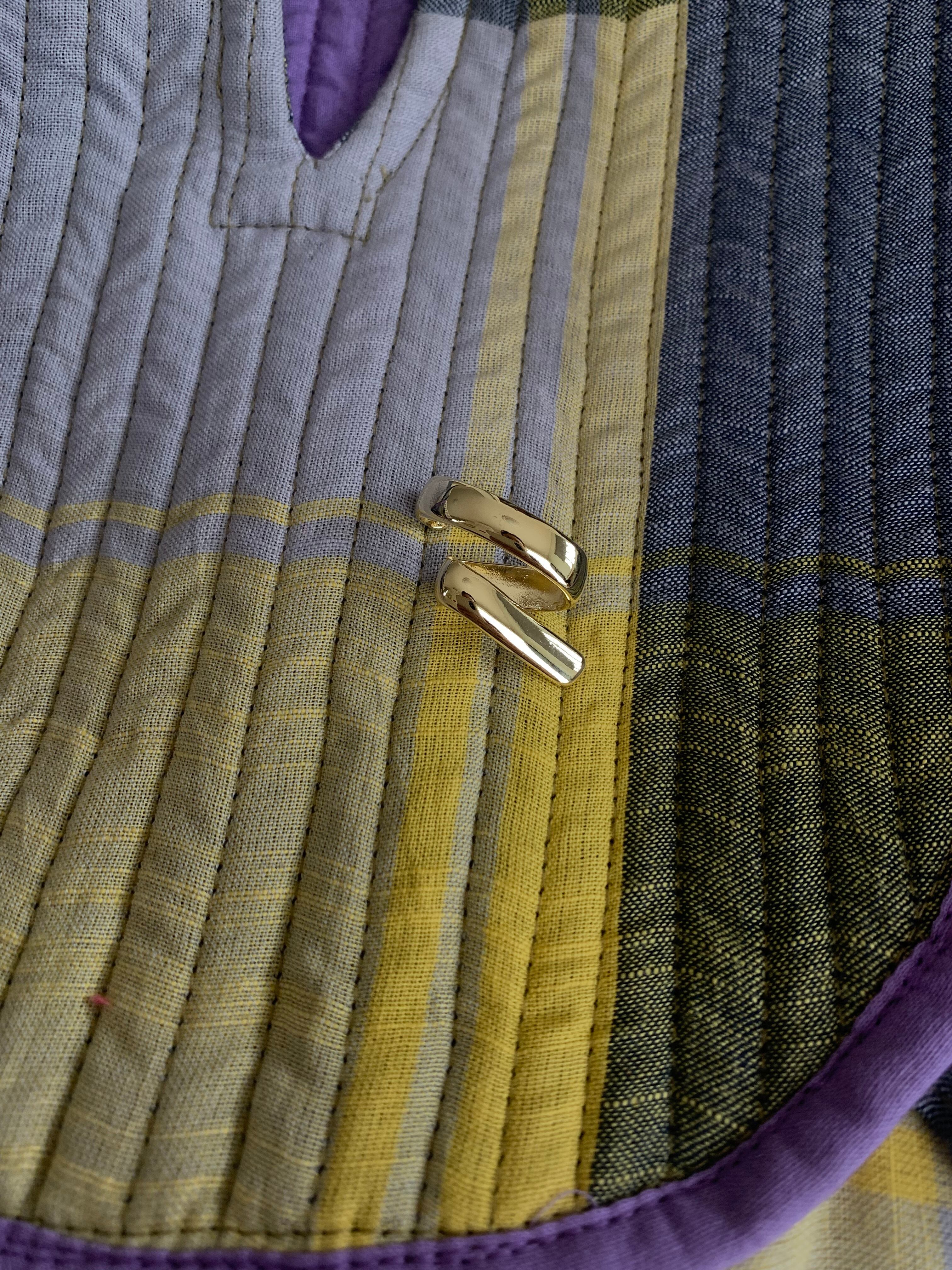 耳たぶを軽く引っ張り、プレートとプレートの間に耳たぶをはさむ感じで装着できます。落ちないか心配な方は、イヤーカフを少し締めて安定させてみてください。