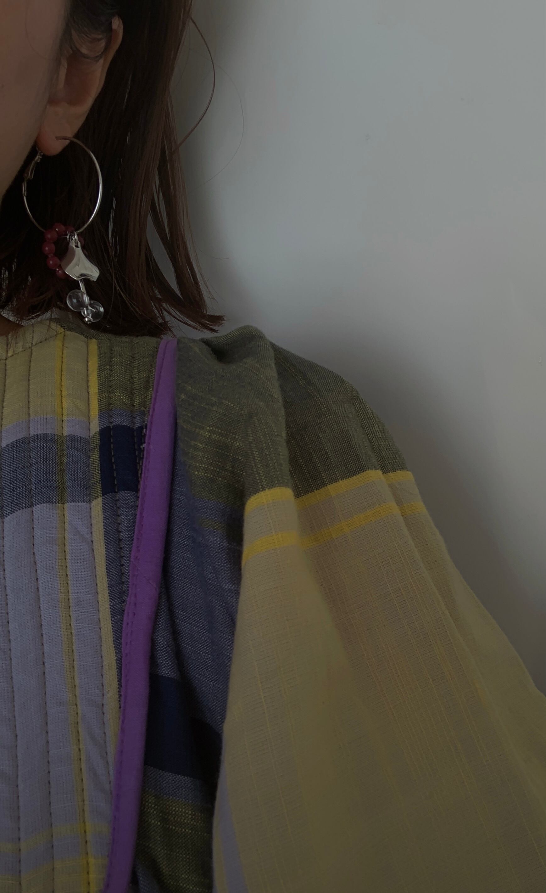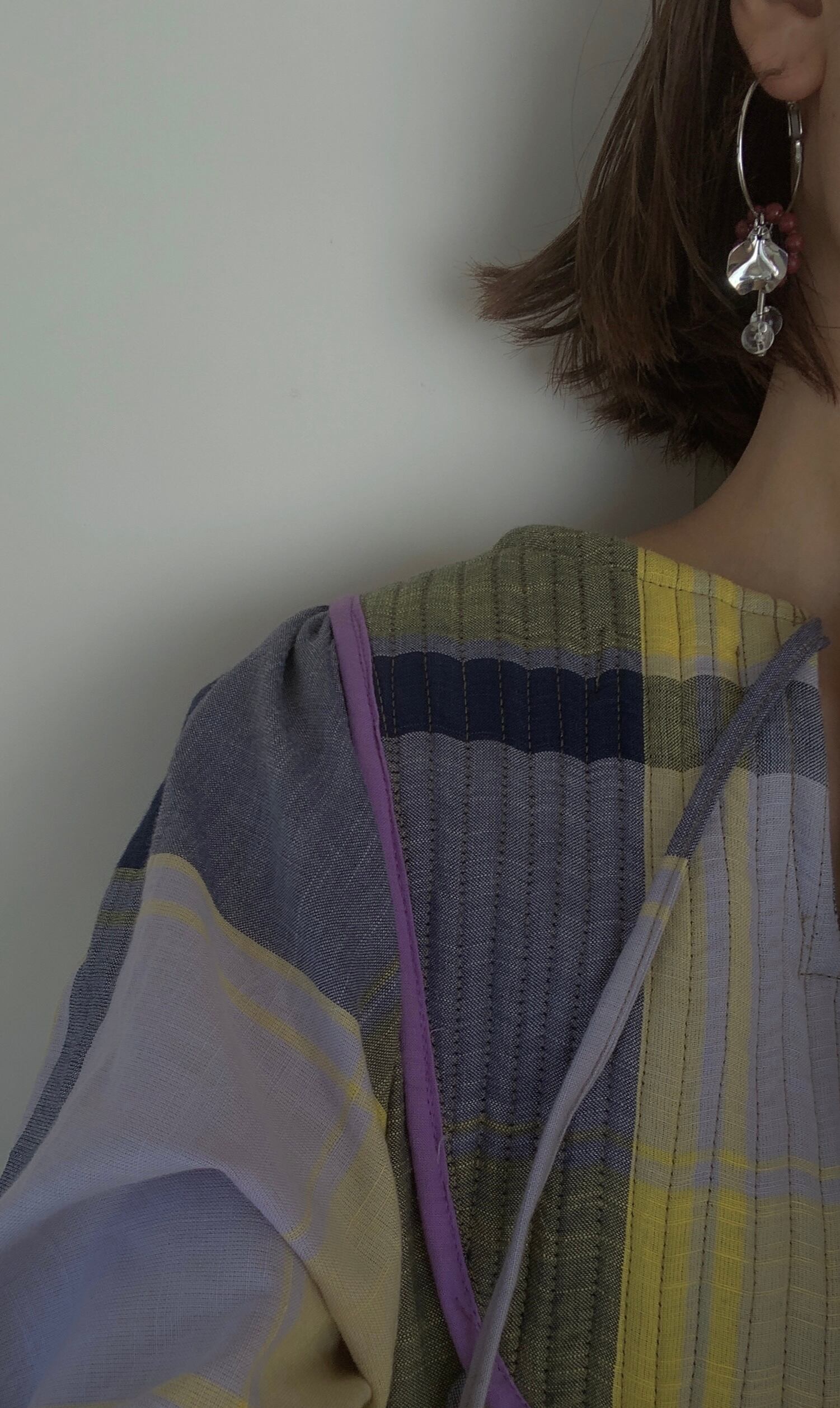 シルバーの真鍮フープに、アシンメトリーデザインで様々なパーツを組み合わせました。