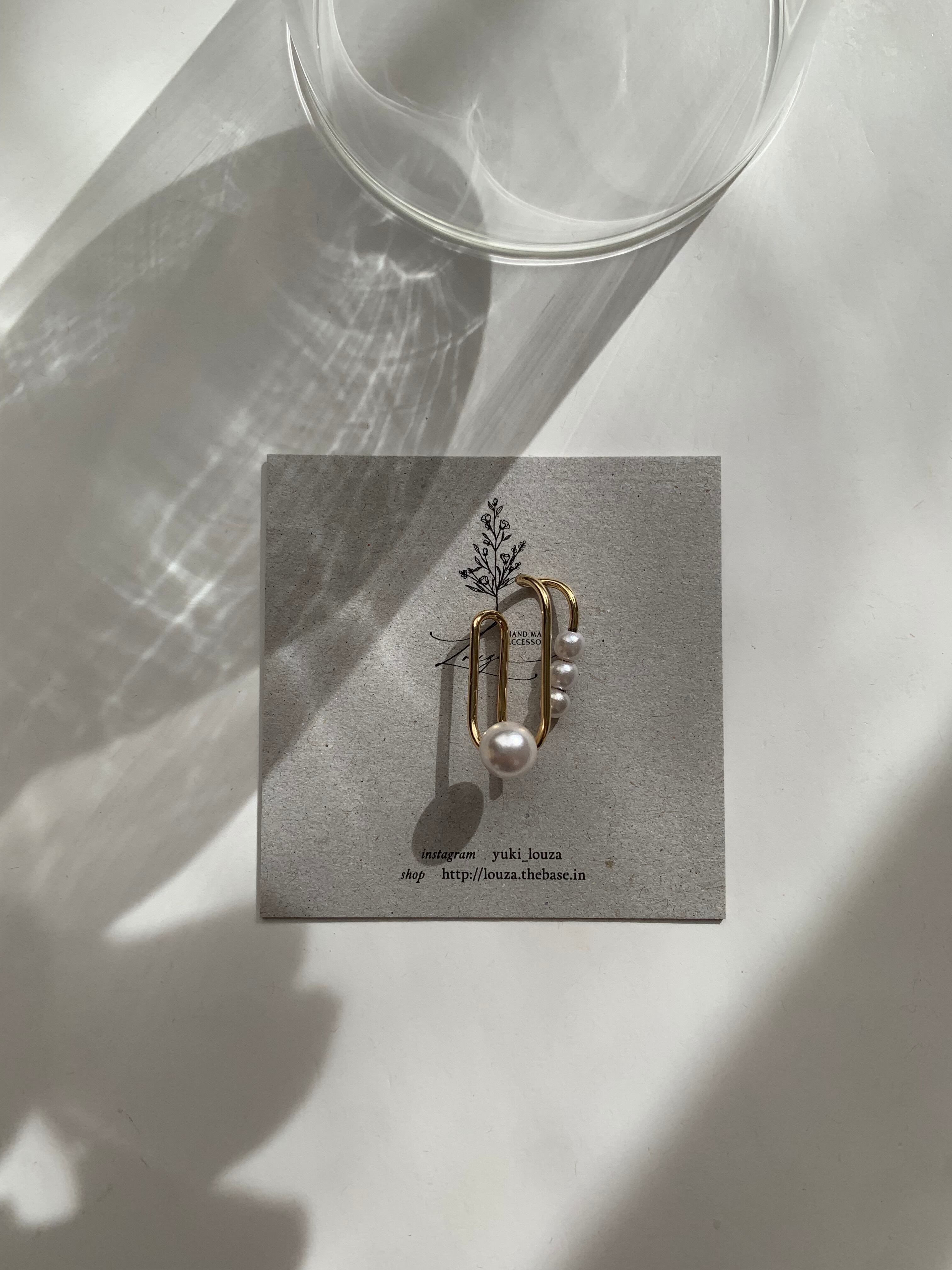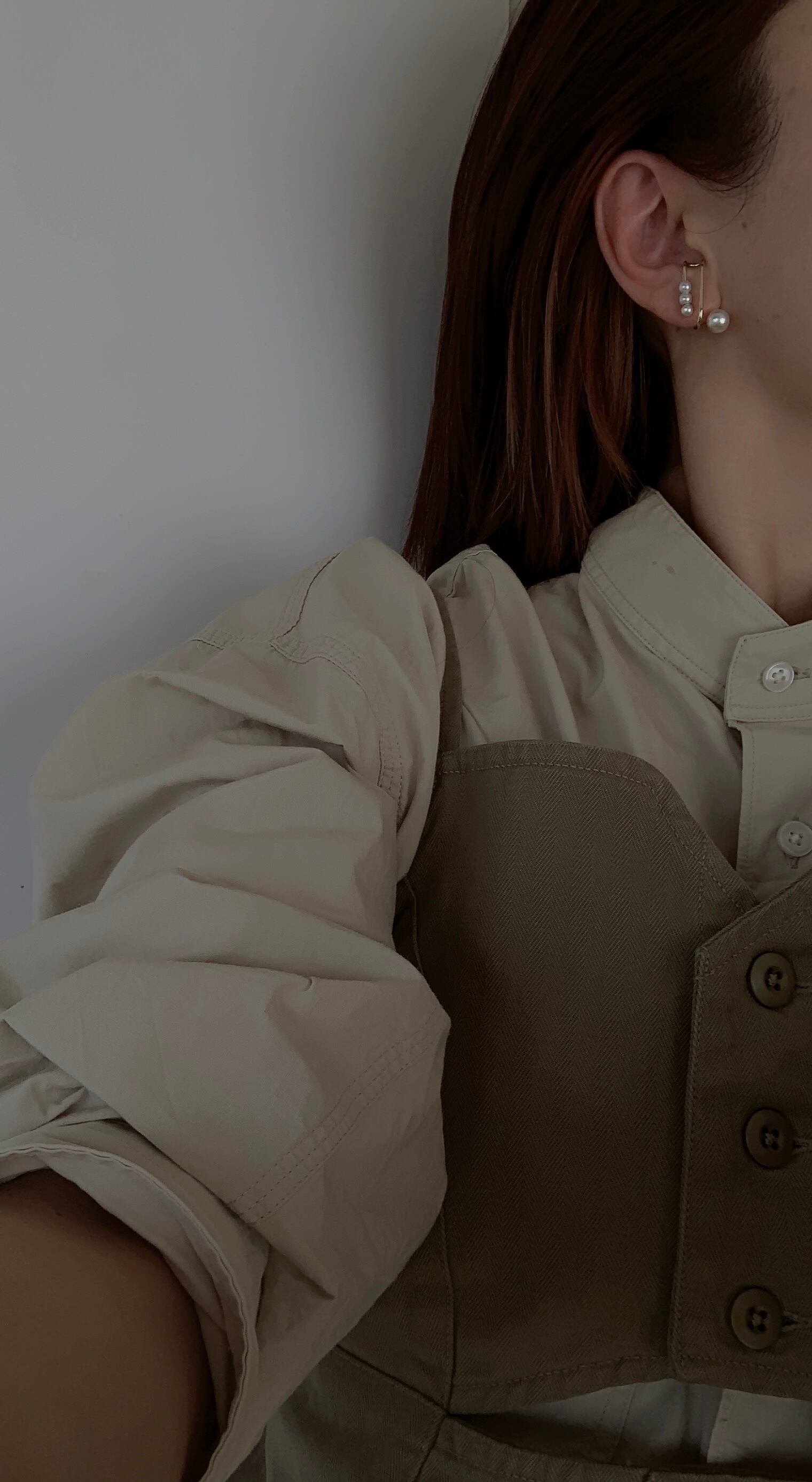 耳たぶを軽く引っ張り、上の耳のふちの薄いところからイヤーカフを通して付けたい位置に持っていくのが、スムーズにつけるコツです。
