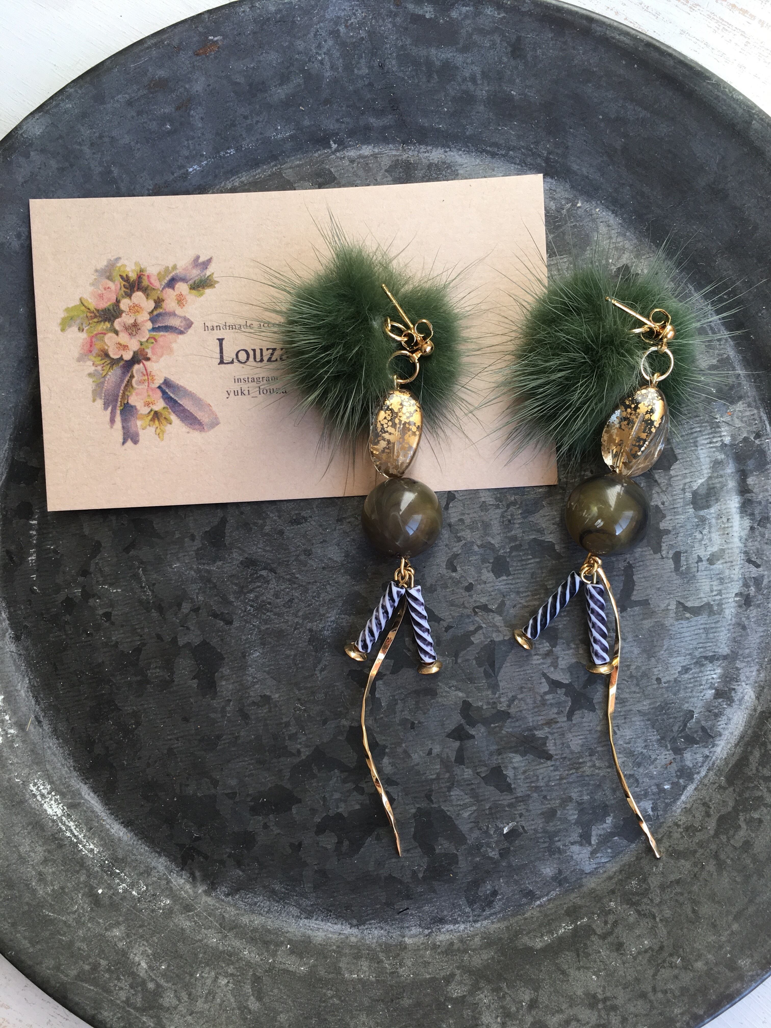 ピアス→裏のキャッチ部分にファーがついてるので、耳のうしろにファーがきます。