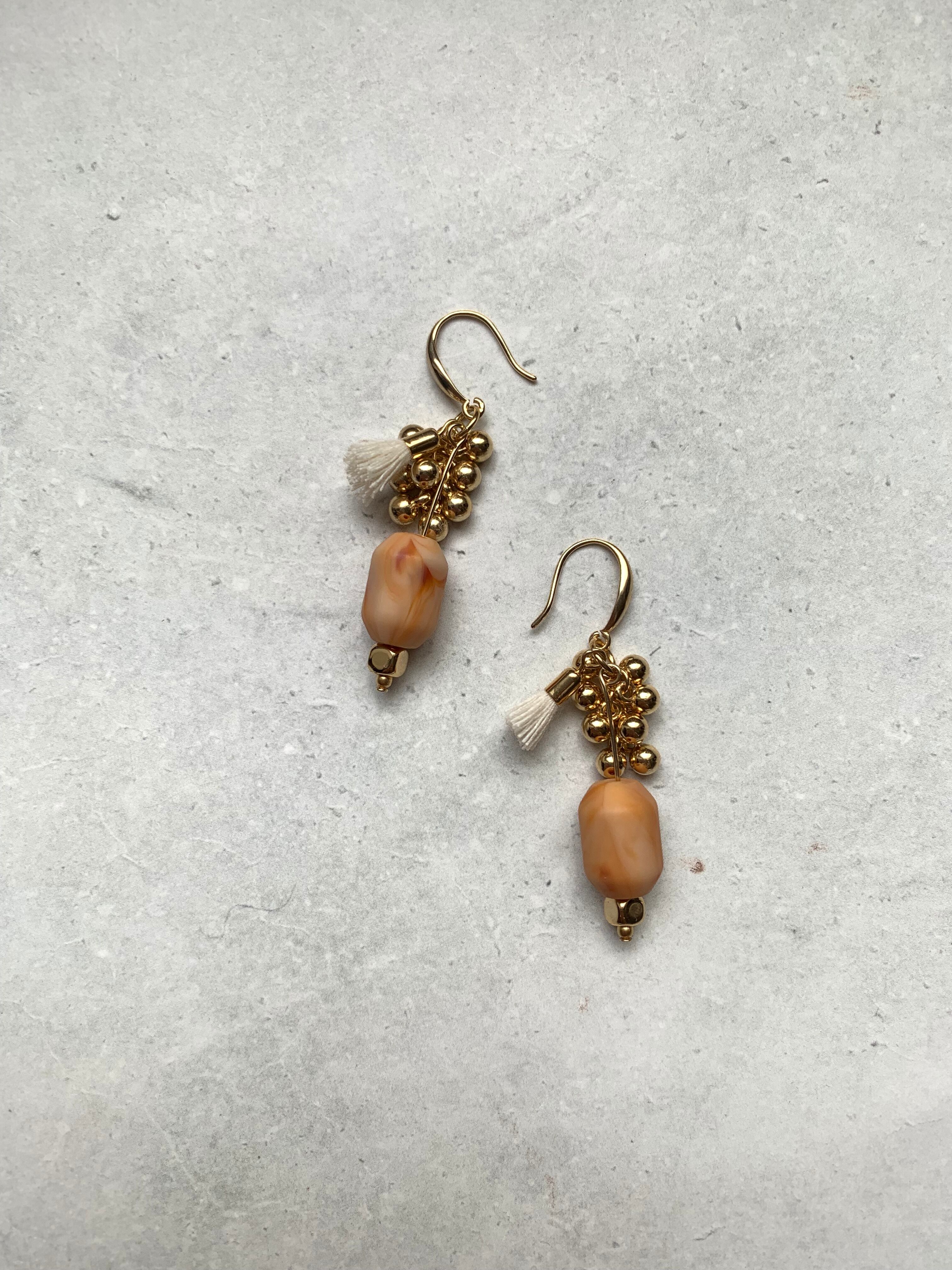 白の小さなタッセルを合わせ、ゴールドカラーでまとめました。