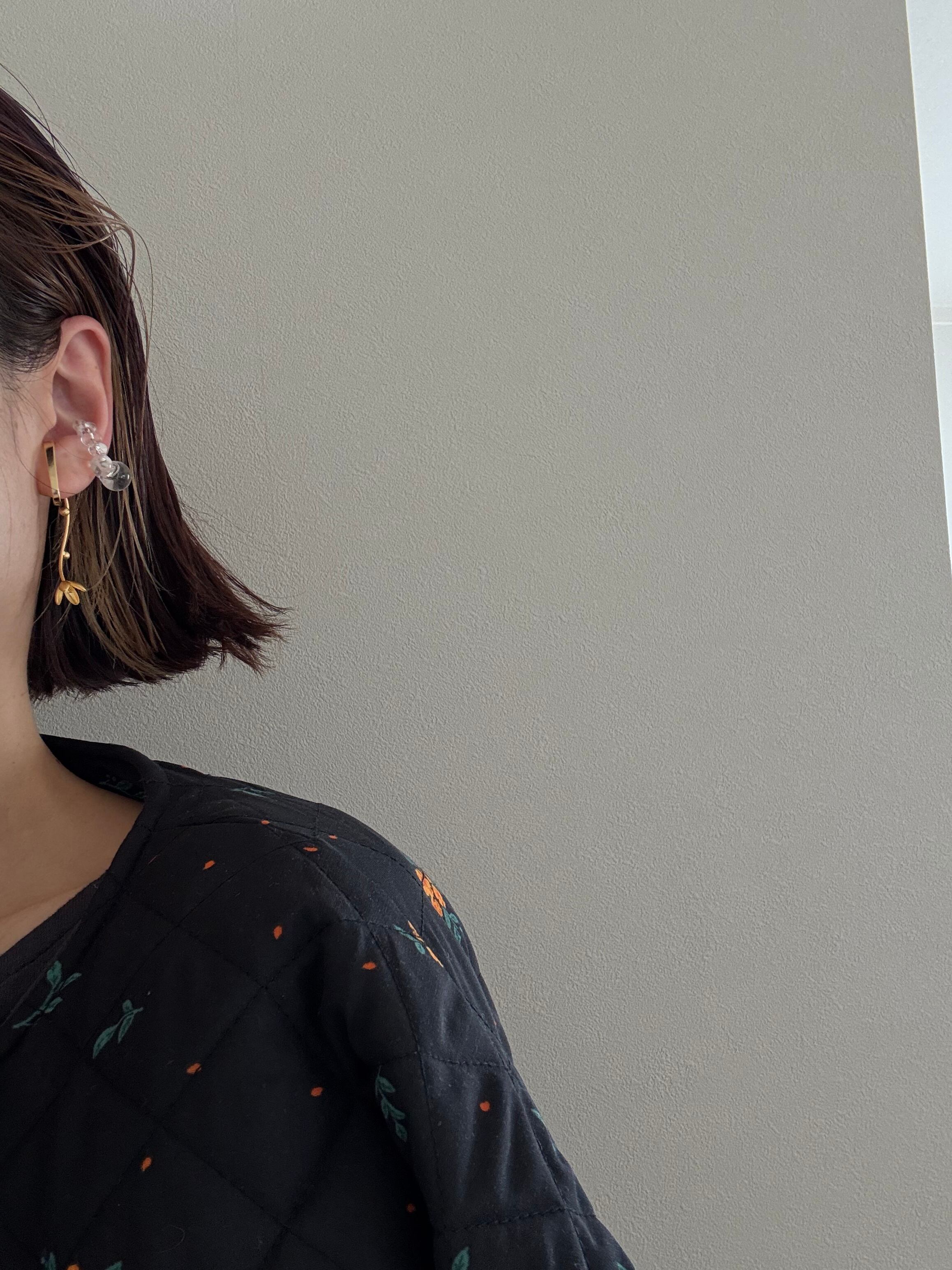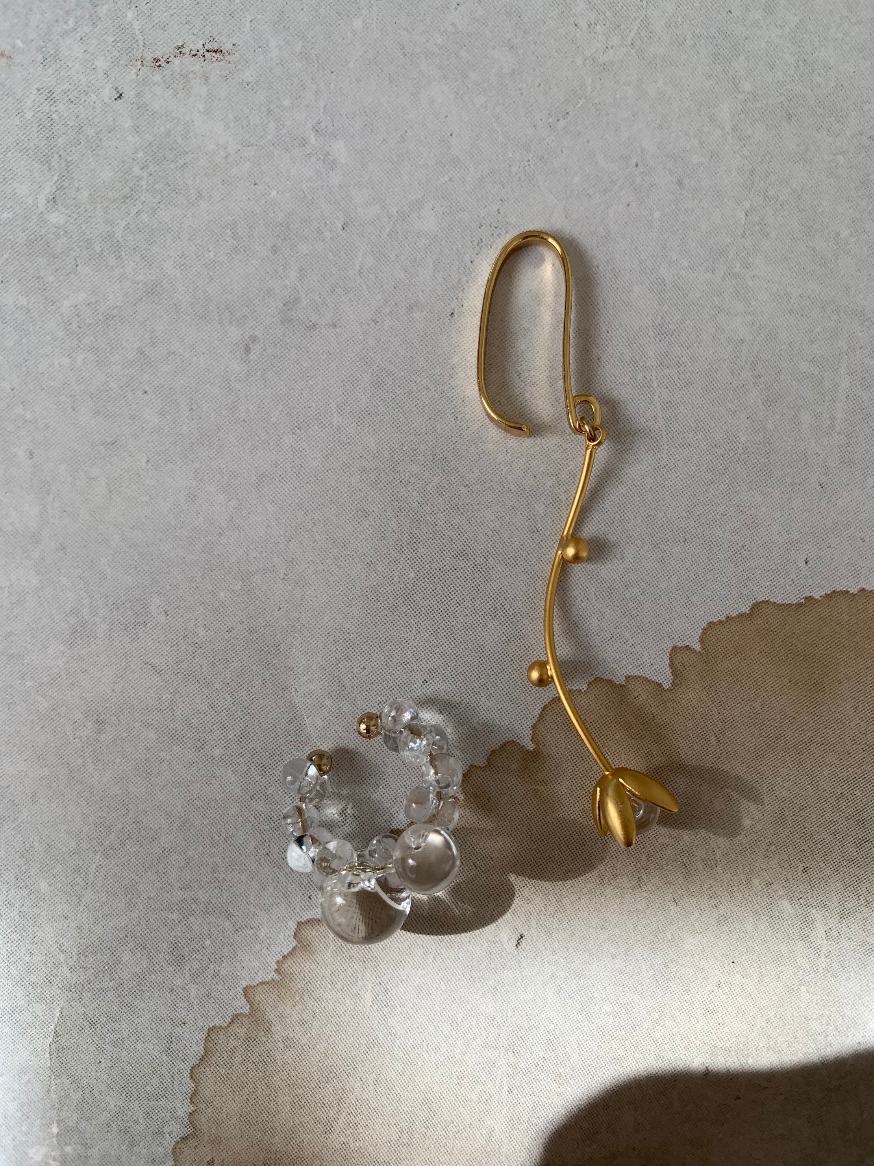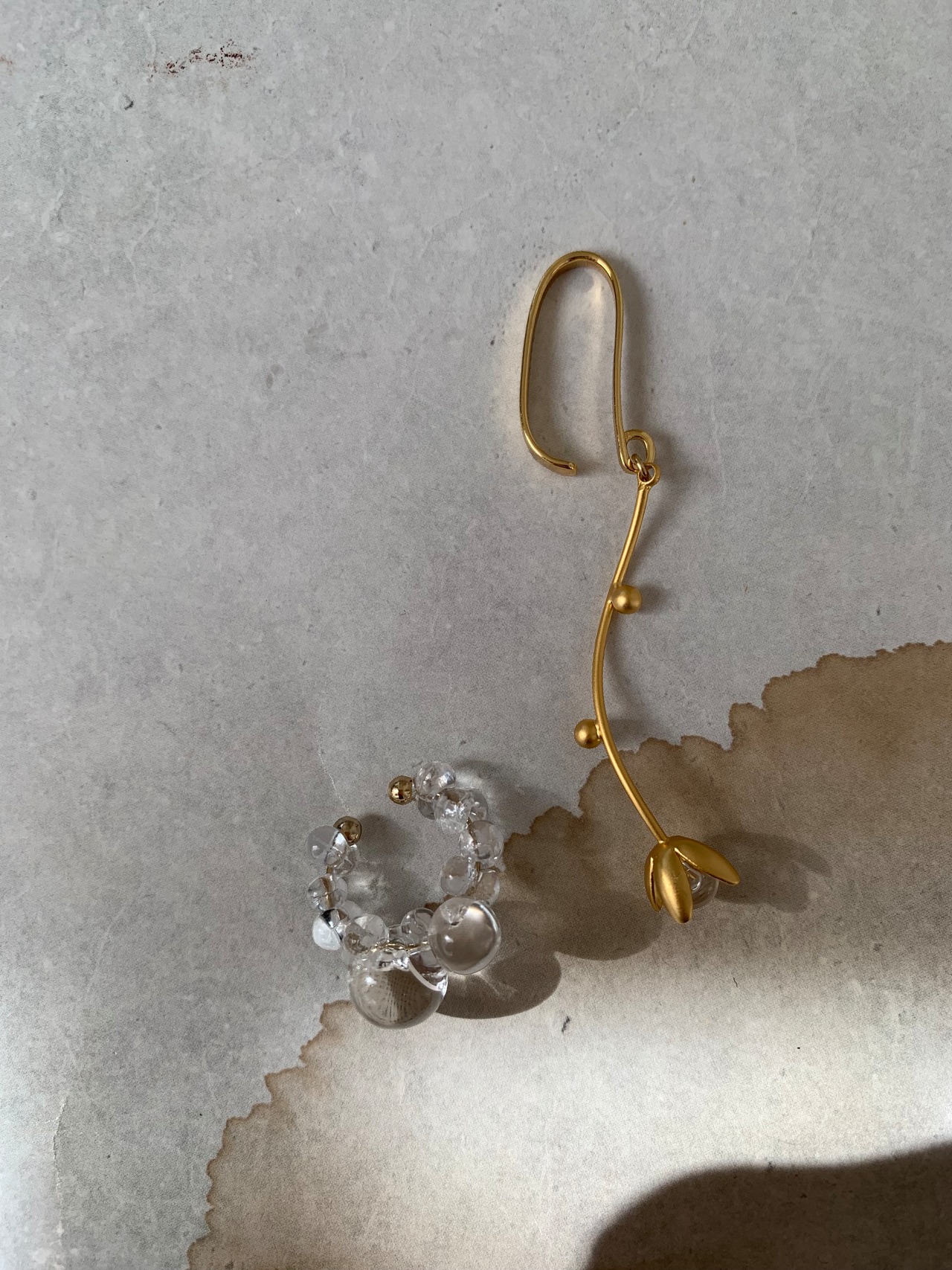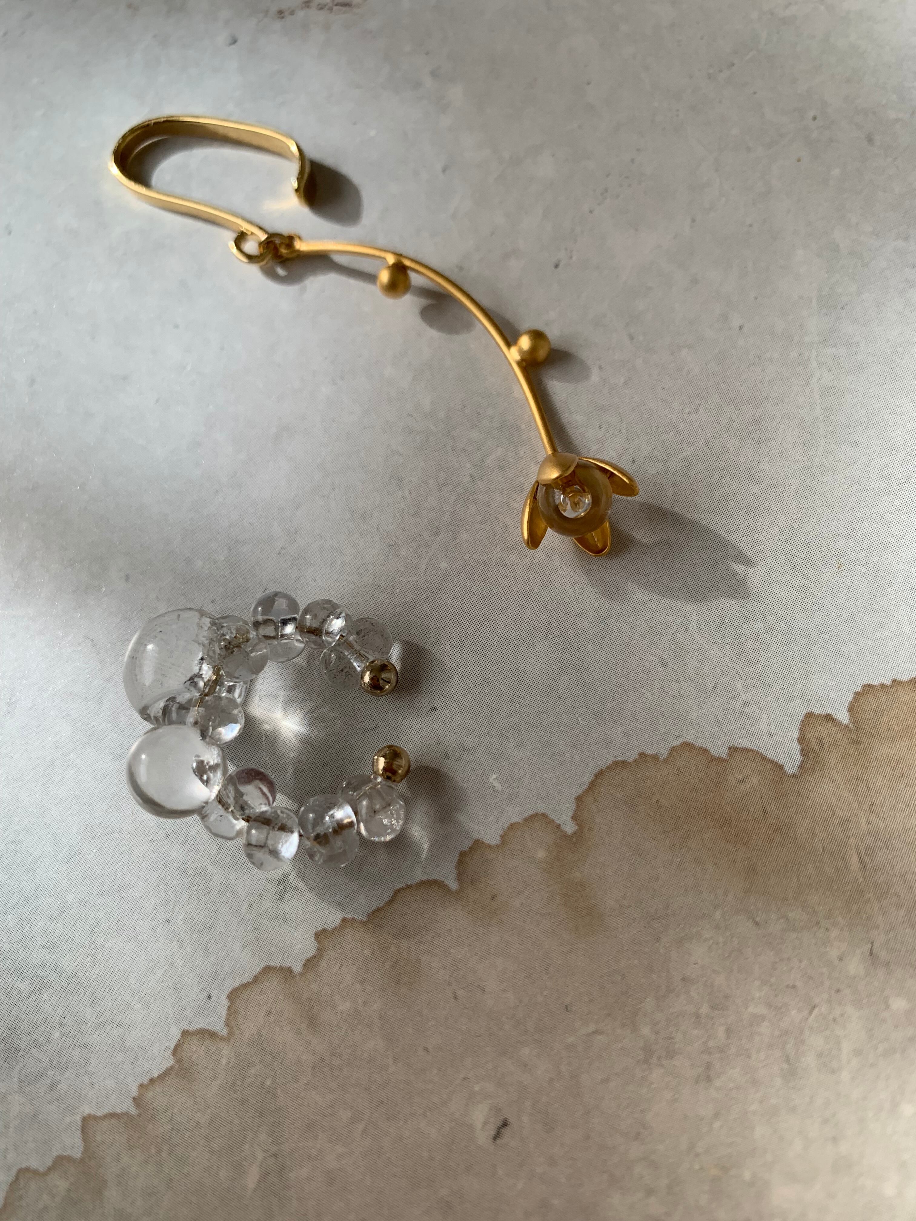 クリアビーズでまとめたイヤカフと、真鍮のフラワーイヤカフセット。