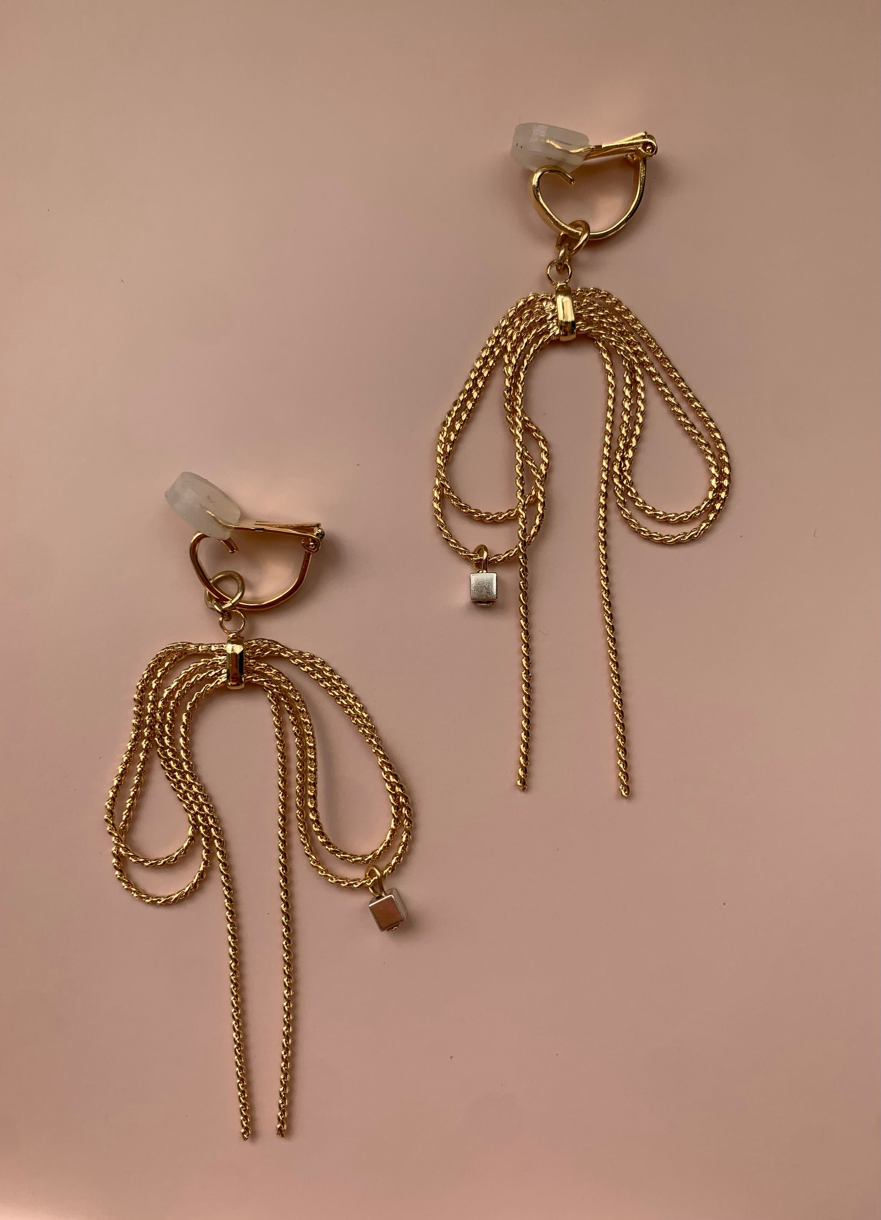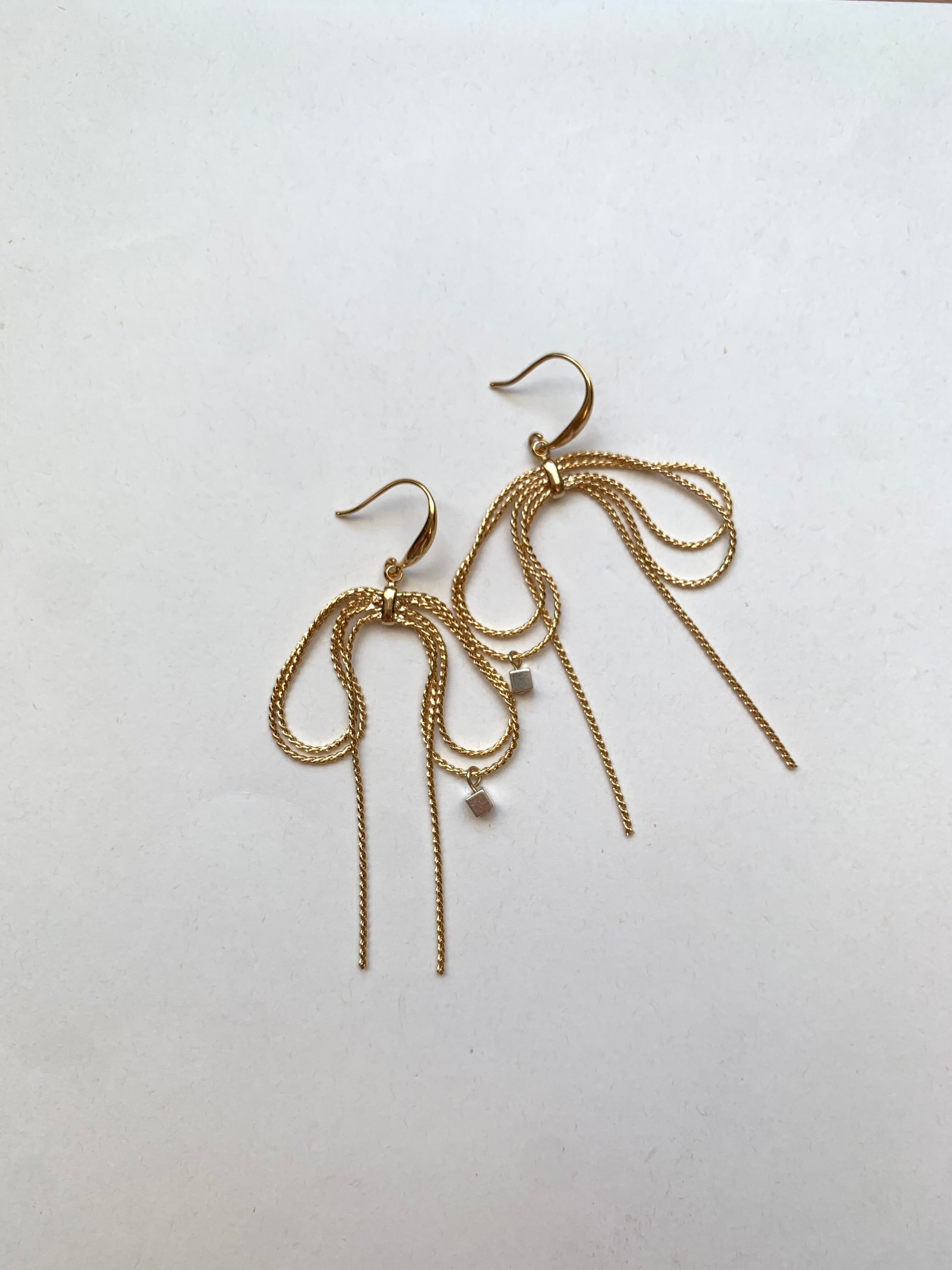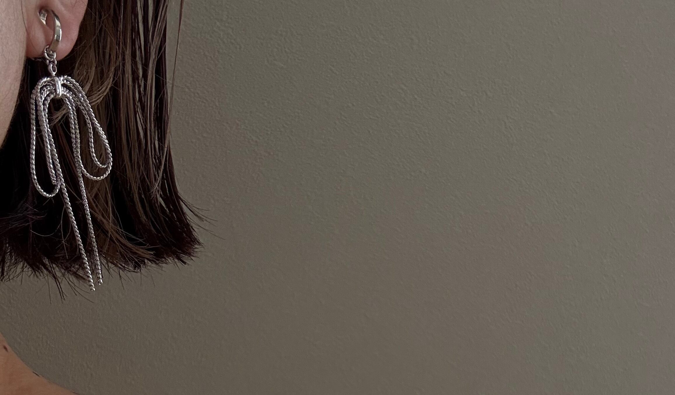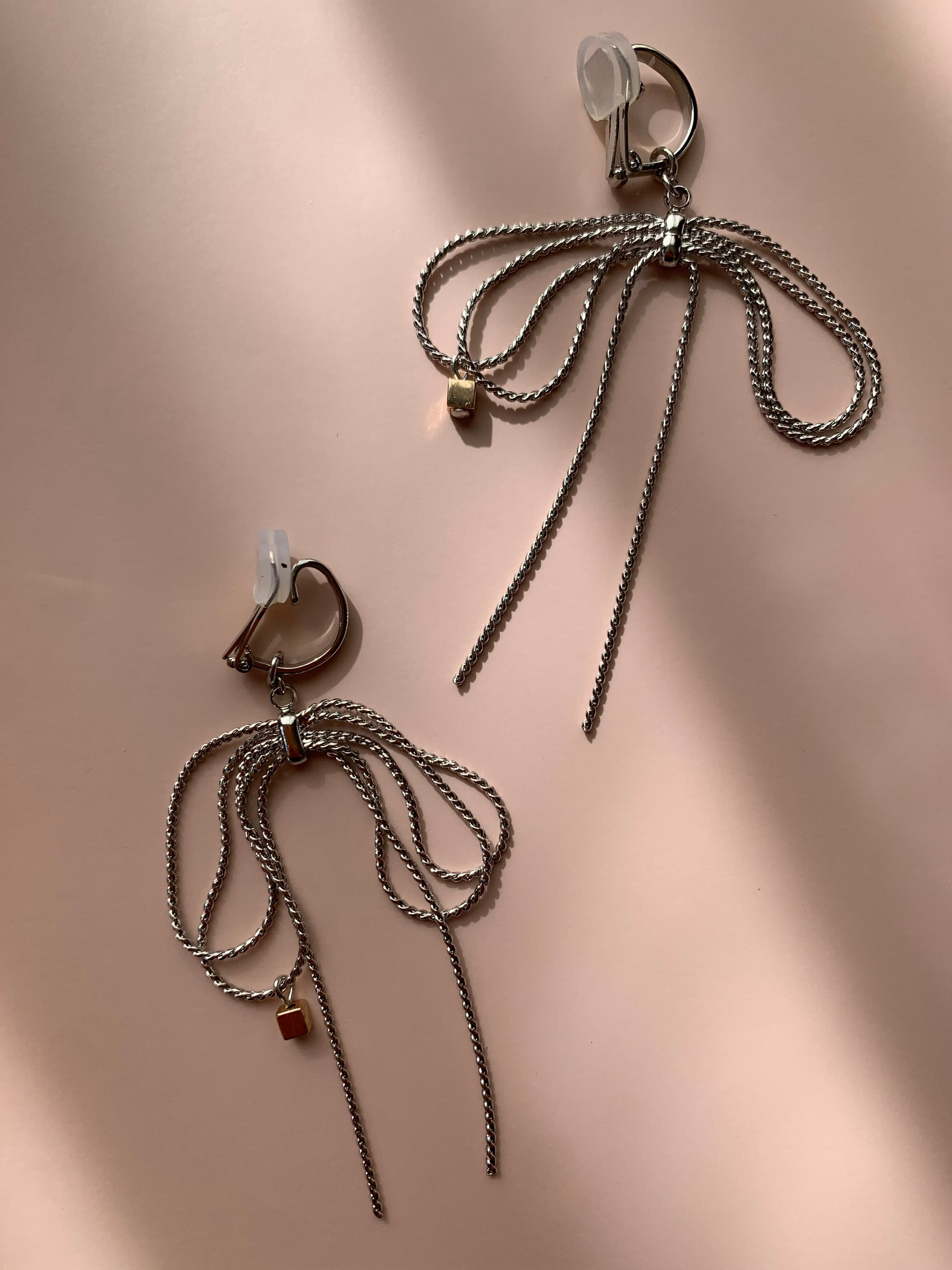 大ぶりながらも繊細な細さのリボンが特徴なので目立ちすぎずに耳元に華やかなアクセントを添えます。