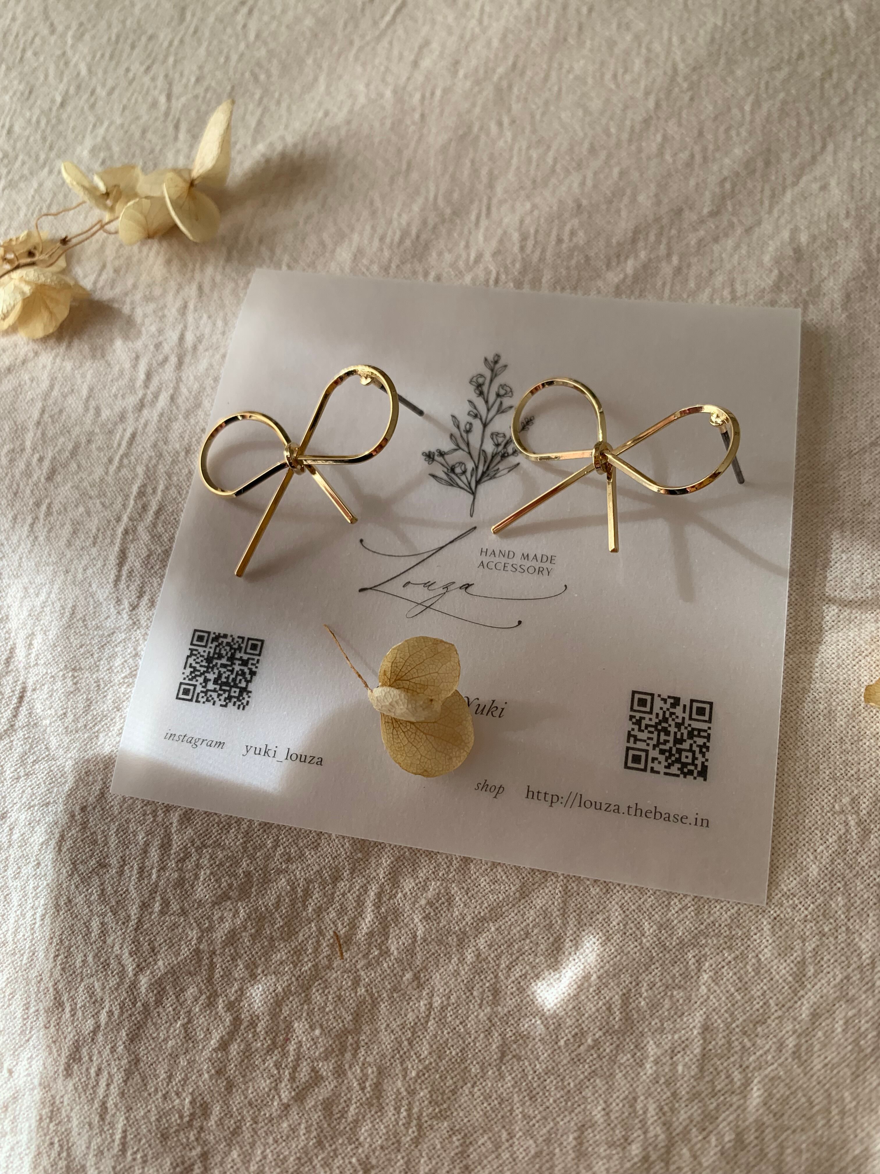 リボンはそのまま真鍮を一本くるんと結んだような細めのデザイン。