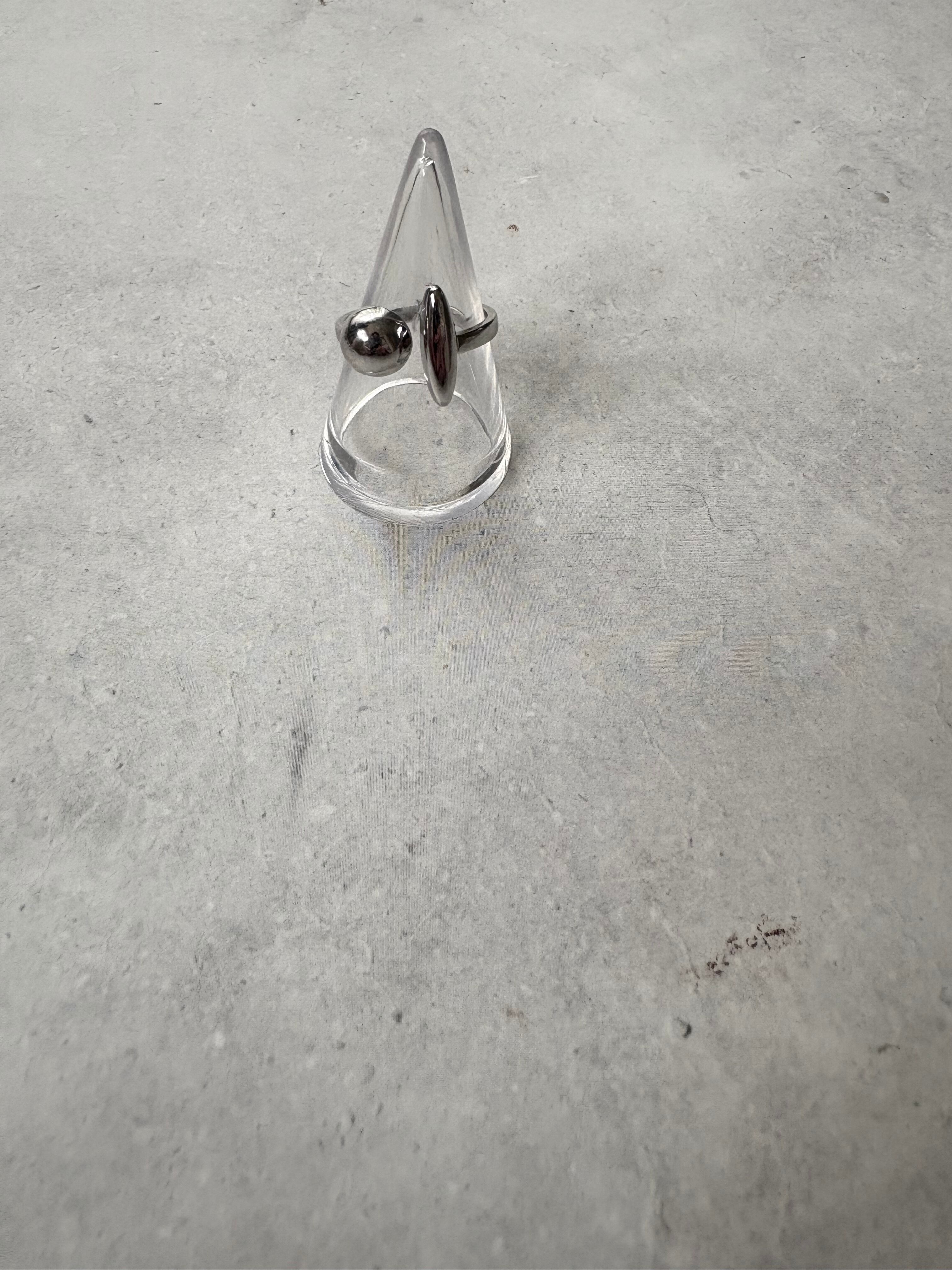 半円ボールモチーフとエクレアのようなバーモチーフを組み合わせた存在感のあるお洒落リング。